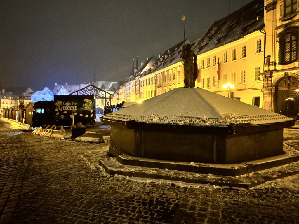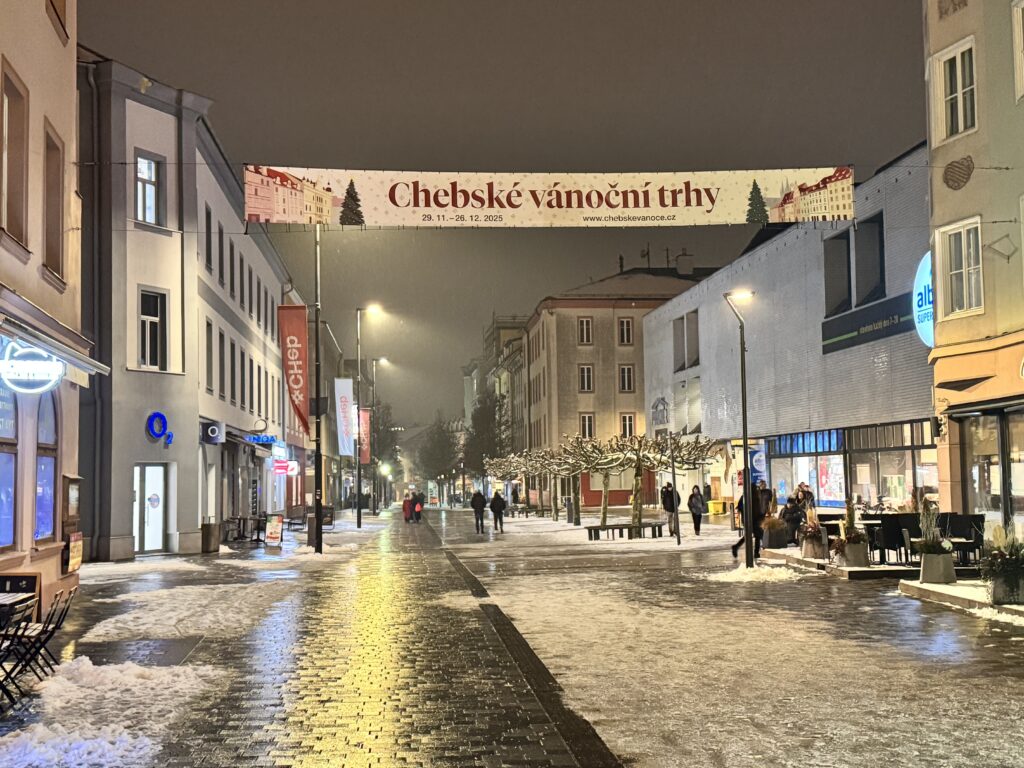 Na předvánoční období se připravují i podnikatelé v okolí náměstíVelkou atrakcí vánočních trhů v Chebu jsou stromky v květináčích, které zdobí žáci chebských základních školChebské vánoční trhy startují již v sobotu 29. listopadu 2025Připraven je i tradiční světelný kalendář na zvoničce.Na předvánoční období se připravují i podnikatelé v okolí náměstíStánky na náměstí jsou zatím zavřené. Prodejci však už plní stánky sortimentem.Technici připravují také kluziště.Na předvánoční období se připravují i podnikatelé v okolí náměstíPřikryté kašny pokryl první letošní sníh. Prodejci v pozadí naváží zboží do stánků.