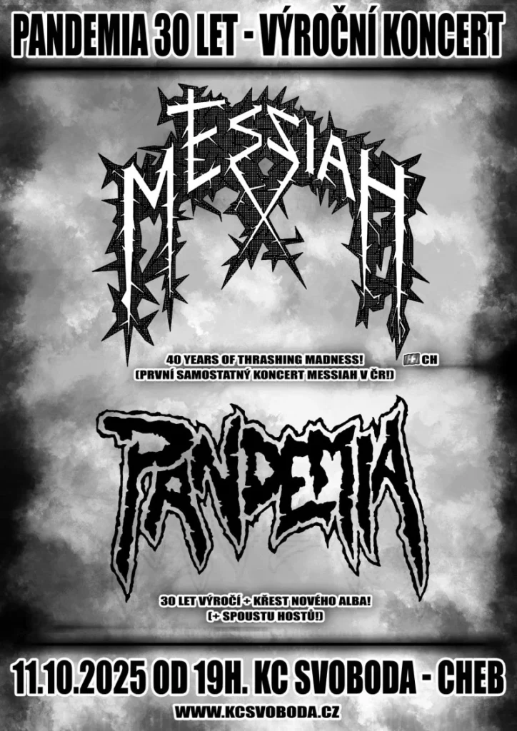 Zní to neuvěřitelně, ale chebská death metalová legenda Pandemia letos slaví neuvěřitelných 30 let existence! Oslava tohoto kulatého výročí proběhne v sobotu 11. října 2025 v Kulturním centru Svoboda v Chebu, kde se fanoušci mohou těšit na opravdu výjimečný večer. Pandemia si pro své příznivce připravila speciální koncert s unikátním setlistem, který bude doslova průřezem celou jejich tvorbou – od raných dem až po nejnovější skladby. Půjde tak o mimořádnou hudební cestu časem, která připomene všechny etapy existence této kapely.